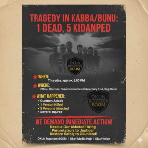 In the wake of the tragedy, ÒKUN Reporters joins local voices and media outlets in demanding urgent action from the authorities. We call on all security agencies and the Kogi State Government to mobilize without delay to rescue the kidnapped victims and ensure the perpetrators are brought to justice.