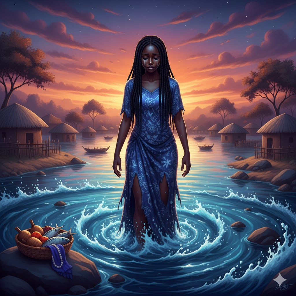 Utterly broken and furious, Yeye Lamo began to sink into the ground. No one paid heed until she was almost completely gone. Her desperate husband finally rushed to her side, pleading with her to stay, but she refused to listen.